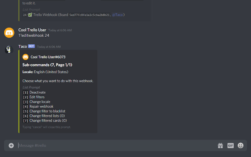 You can change the way your webhook operates with the /webhook set command. From here you can change: